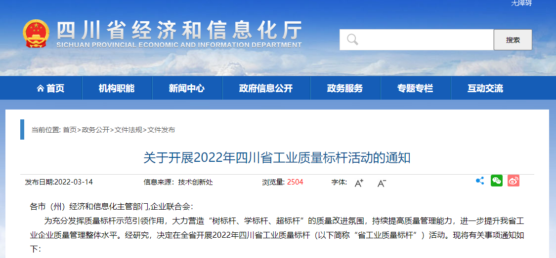 (一)拟于今年9月全国“质量月”期间组织召开“2022年四川省工业质量杆经验交流现场会”,宣传推广省工业质量标杆企业的先进质量管理理念、方法和经验,引导更多企业或组织“学标杆、做标杆、超标杆”。